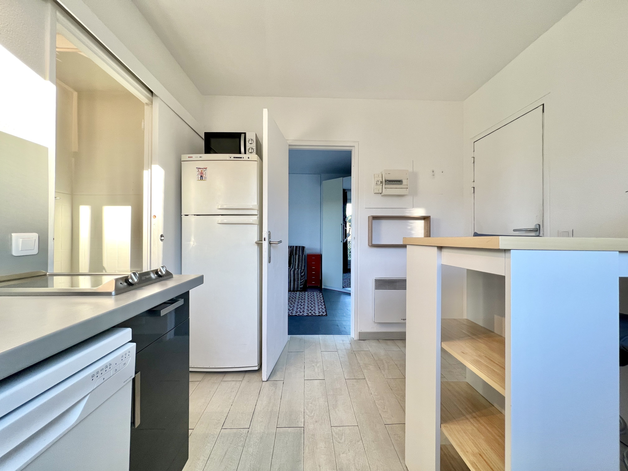 Bastides & Villas Immobilier vous propose à la vente ce studio avec belle terrasse composé d'une entrée, d'une pièce comprenant le coin kitchenette et salle à manger (environ 8,23m2), d'une pièce faisant office de pièce à vivre ( salon - chambre d'envrion 11,98m2 ) ouvrant sur une terrasse d'environ 8,45m2, puis d'une salle de bains avec water-closet (d'environ 3,54m2).
