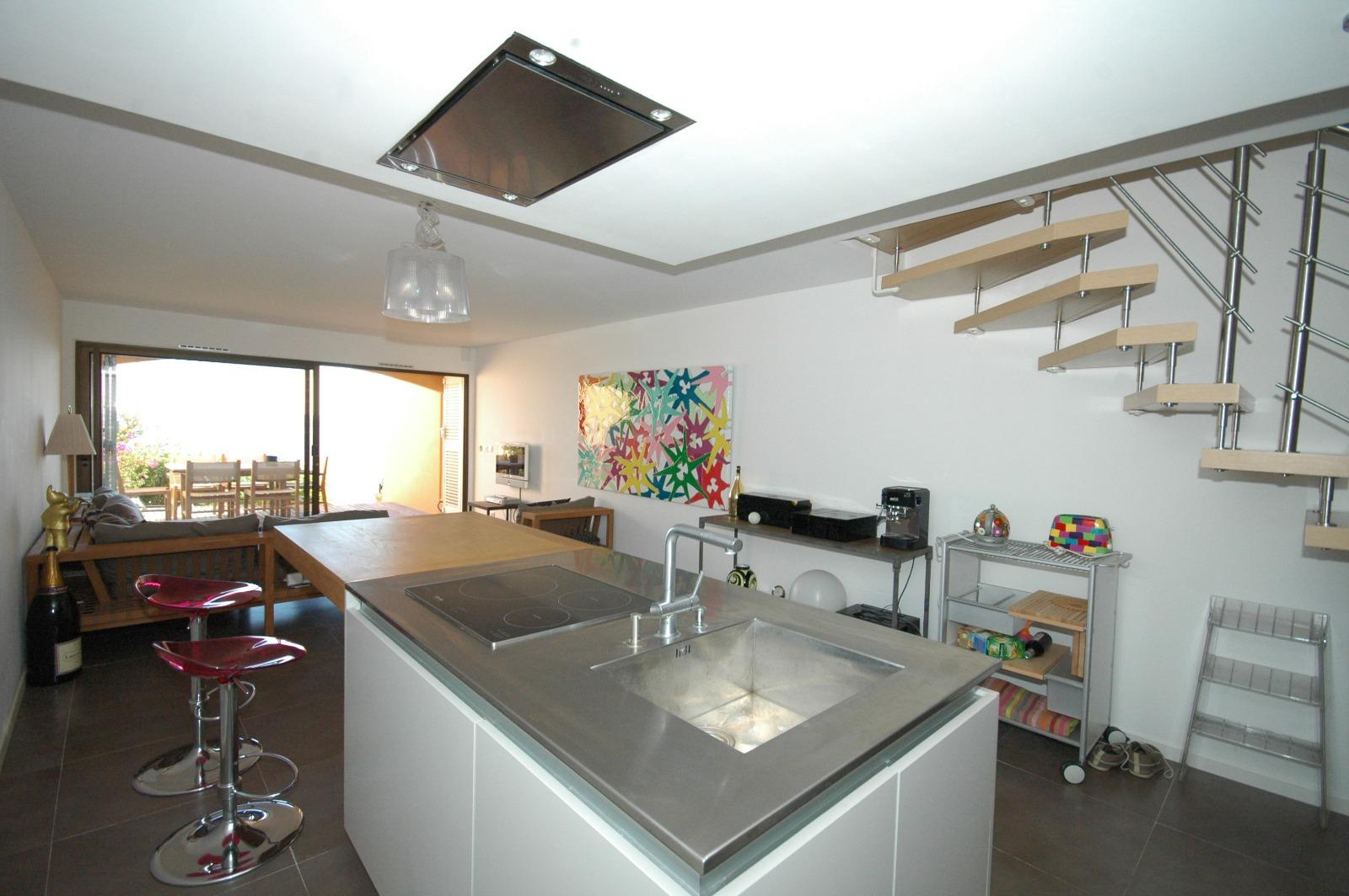 Vendu : Superbe appartement en duplexe entièrement rénové dans un style contemporain de type 3-4 pièces avec garage situé dans une résidence de standing avec piscine et accès sous terrain à la plage et bénéficiant d’une vue mer époustouflante et d’un calme olympien.