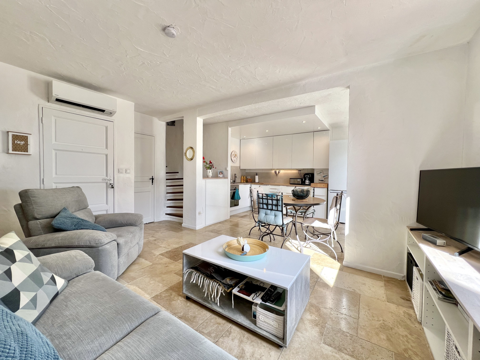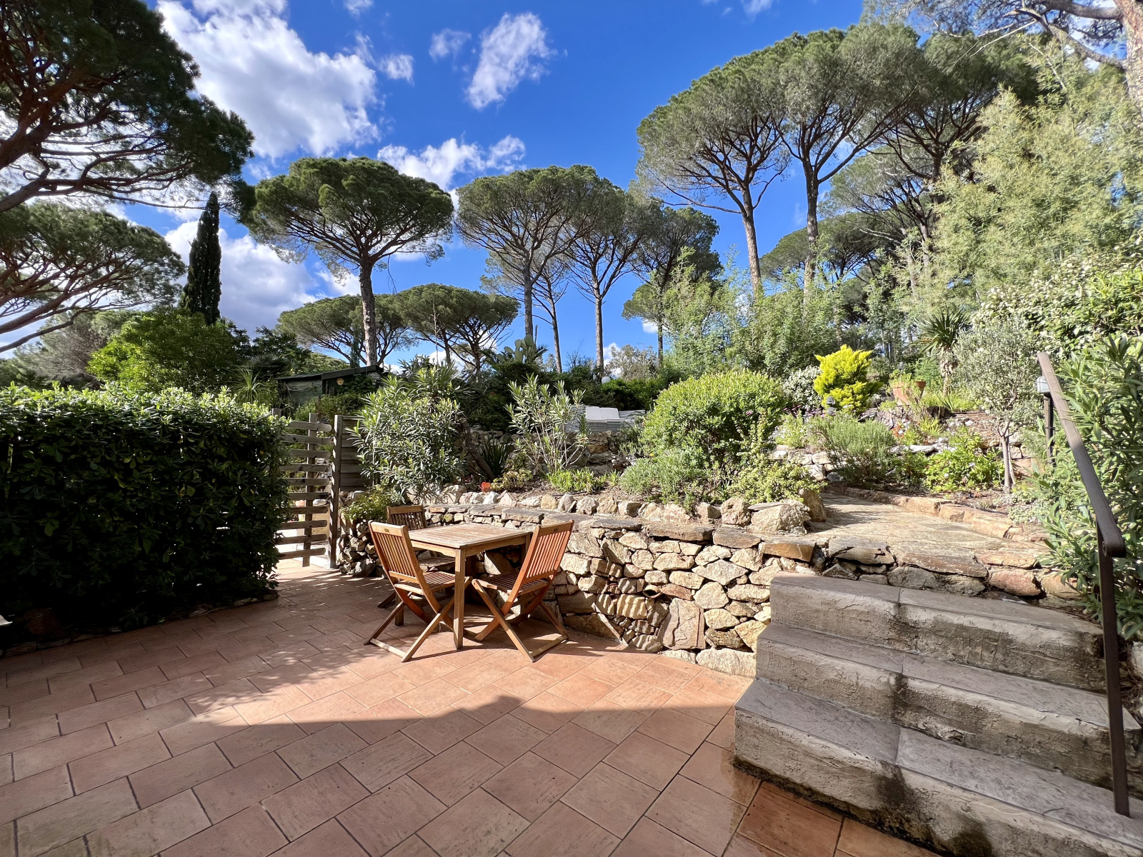 À Sainte-Maxime, dans une copropriété sécurisée "le Domaine des restanques" avec parc arboré, pinède, piscine et terrain de tennis, Bastides & Villas immobilier vous propose à l'achat ce Mas provençal qui a bénéficié d'une très belle rénovation intégrale avec de très jolis matériaux.