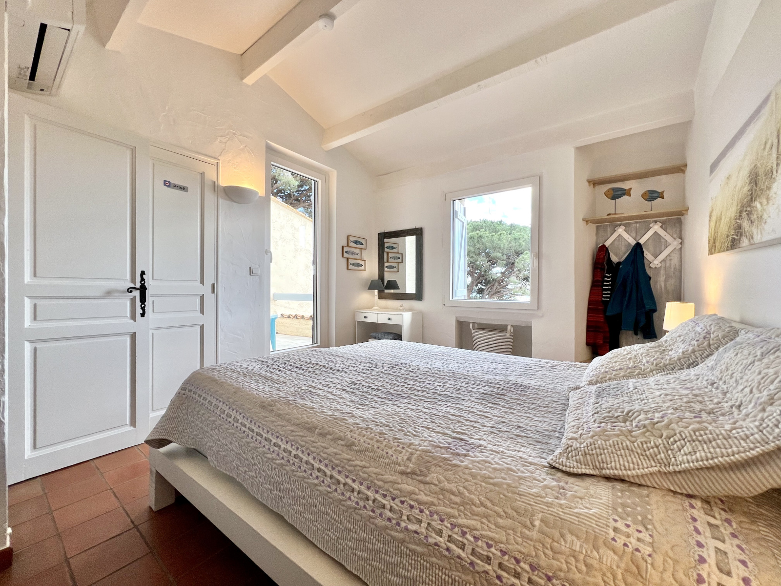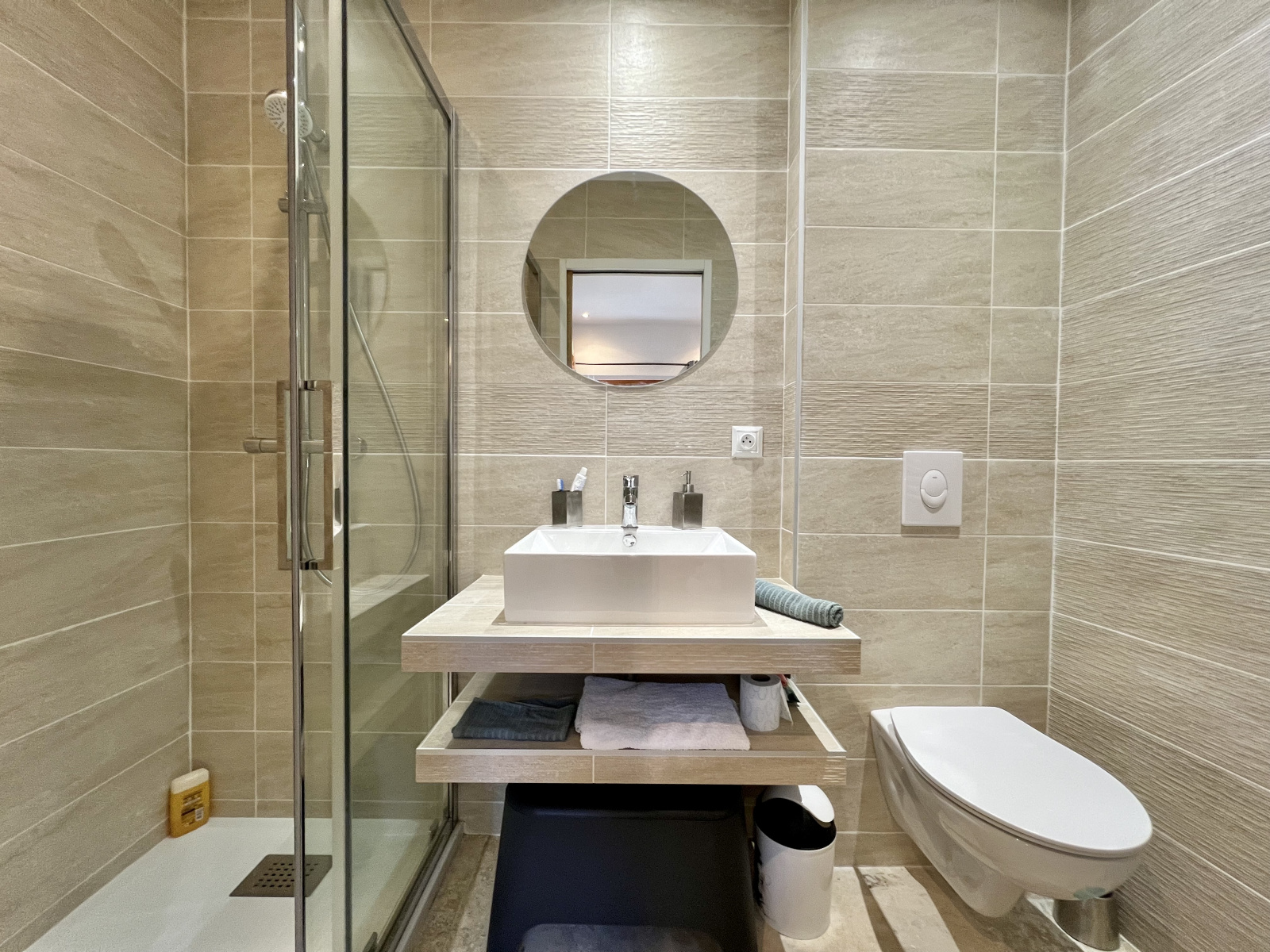 À l'étage : une chambre avec terrasse solarium au SUD, un wc individuel, une salle de douche.