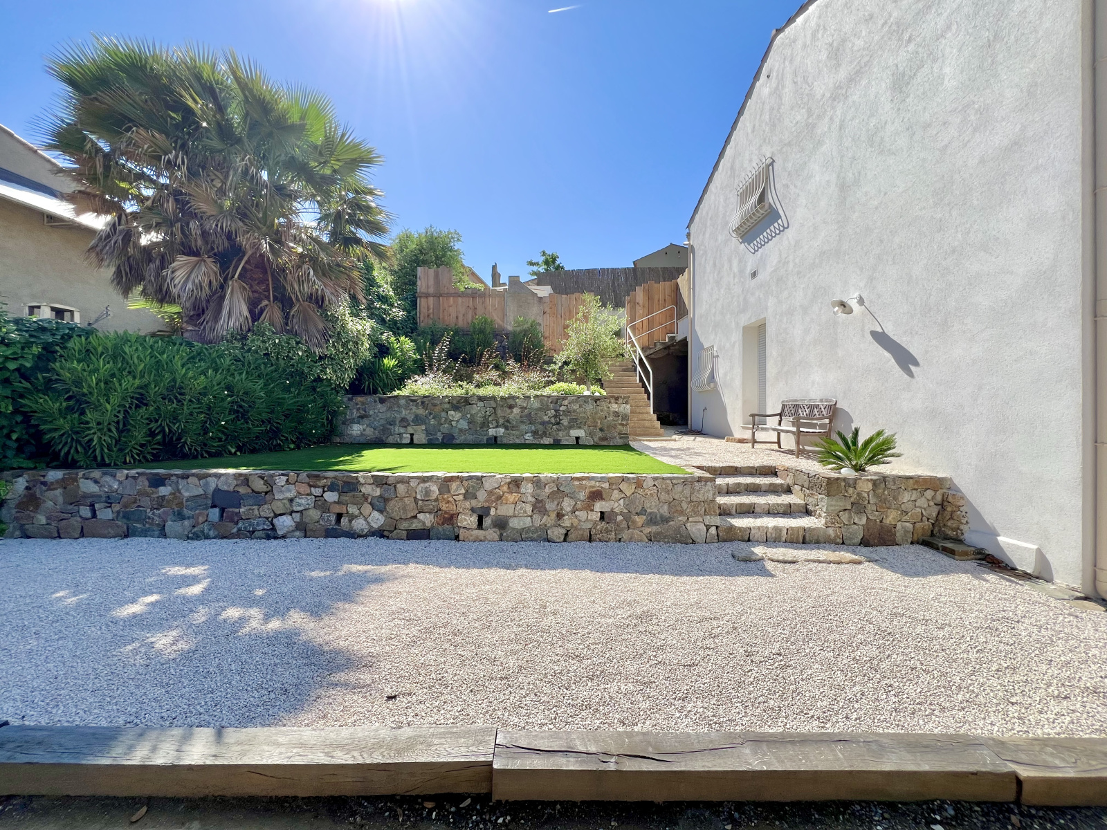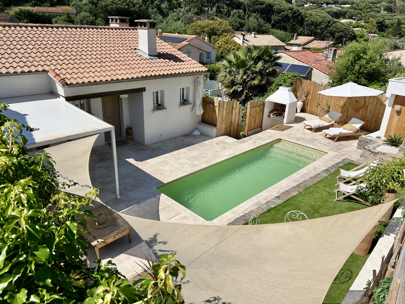 Villa-appartement mitoyenne par un coté, sans vis-à-vis ni nuisances, profitant d'un terrain arboré d'environ 483m2 en restanques avec piscine, bains de soleil et coin barbecue, ou règne une atmosphère cocooning et détente absolue.