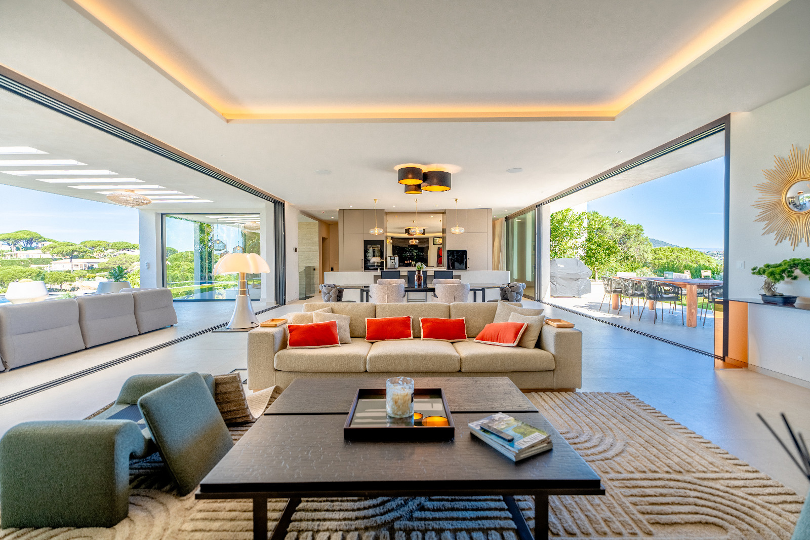 Édifiée sur un terrain paysager de 1980 m², vous disposerez d’une situation unique et dominante avec ses deux vues mer : l’une avec le massif de l’Esterel en toile de fond, l’autre sur l’incontournable Golfe de Saint-Tropez.