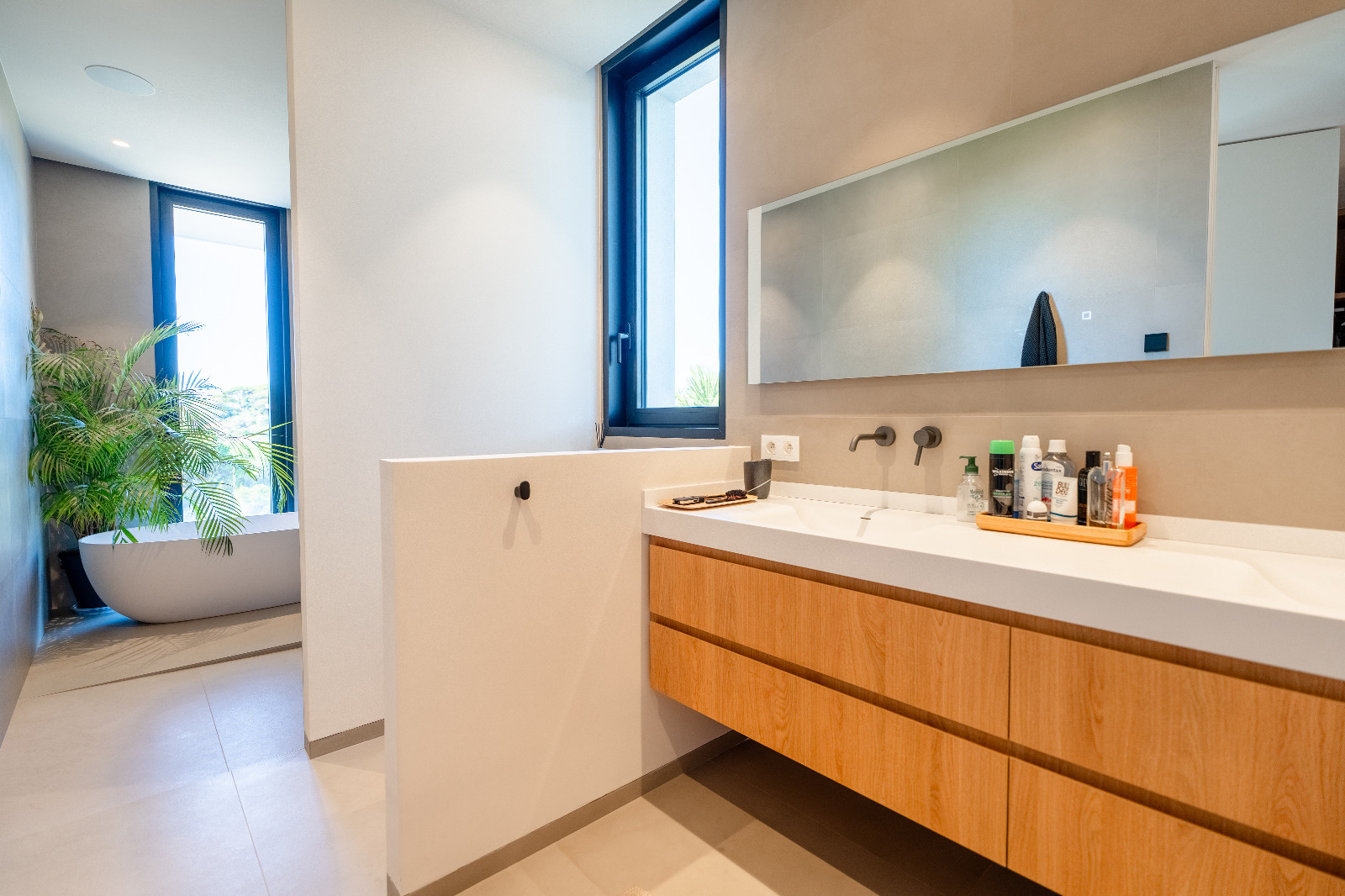 La villa compte cinq vastes chambres toutes en suite, avec salle d’eau privative, WC et dressing, Parmi celles-ci les deux masters disposent de leur vue mer à couper le souffle.