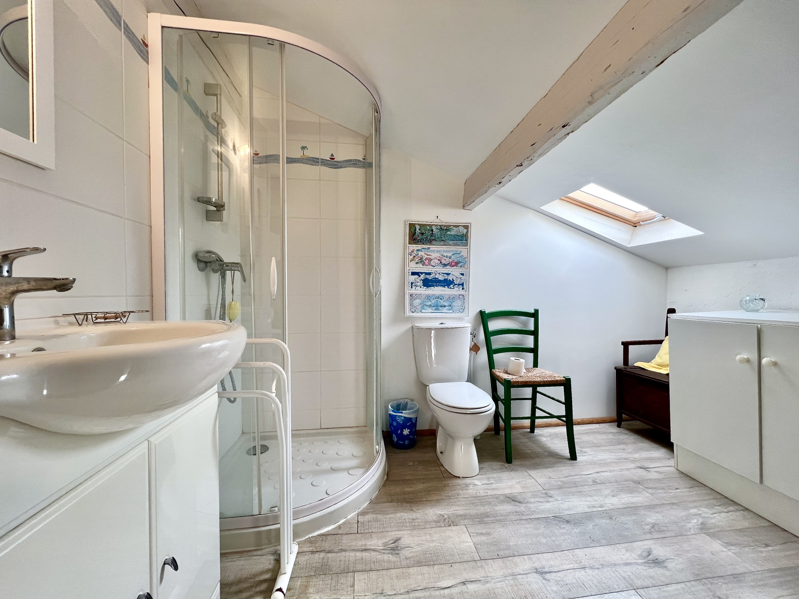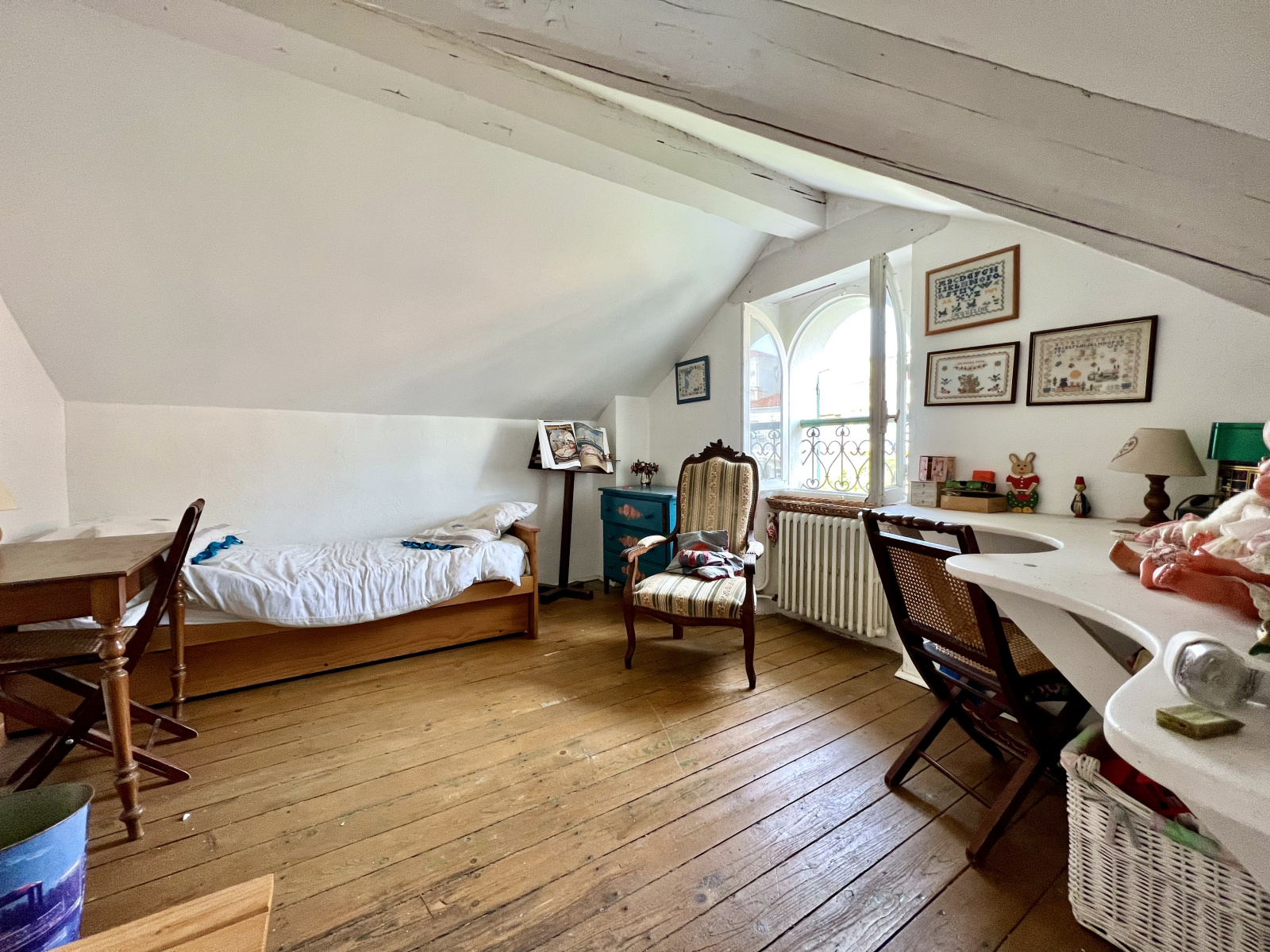 Au 2ème étage sous combles : d'une chambre mansardées de 12m² avec balcon offrant un très joli aperçu mer, de deux chambres, d'une salle de douche et wc.