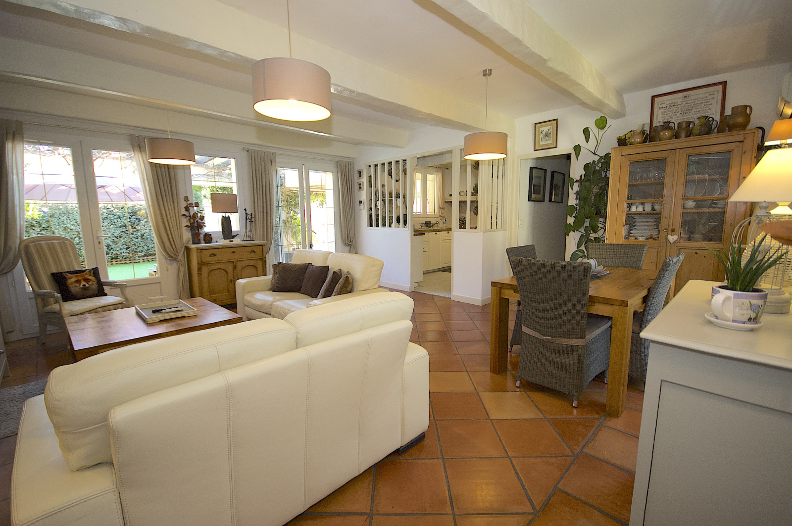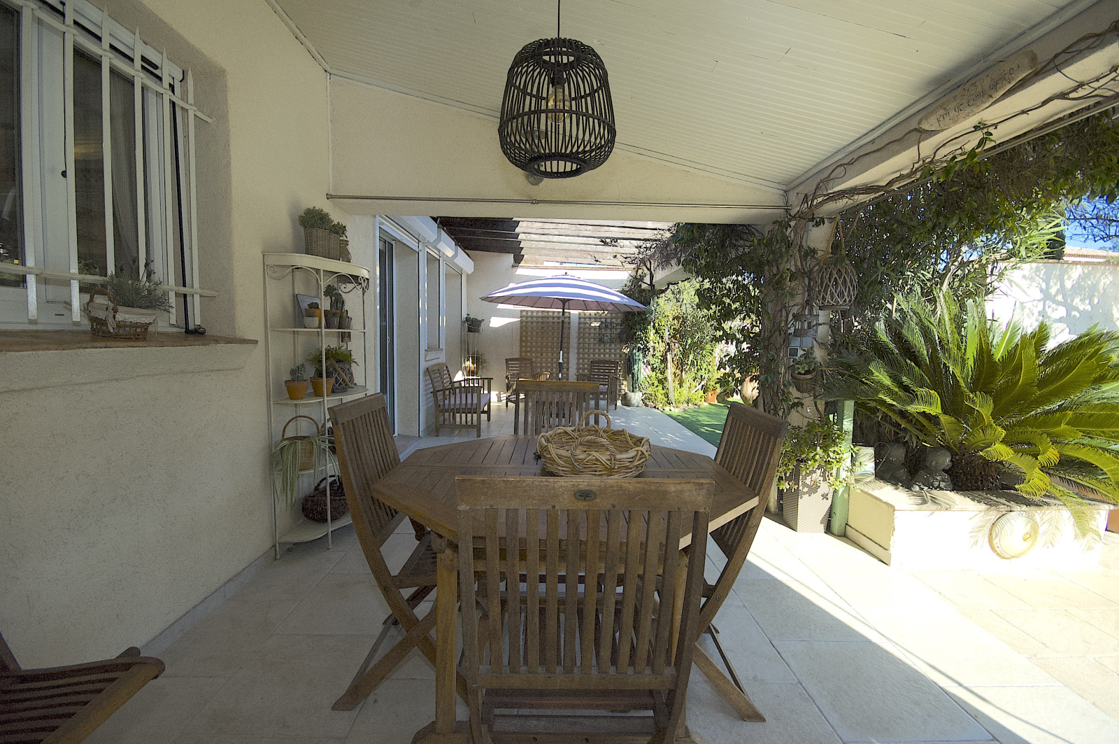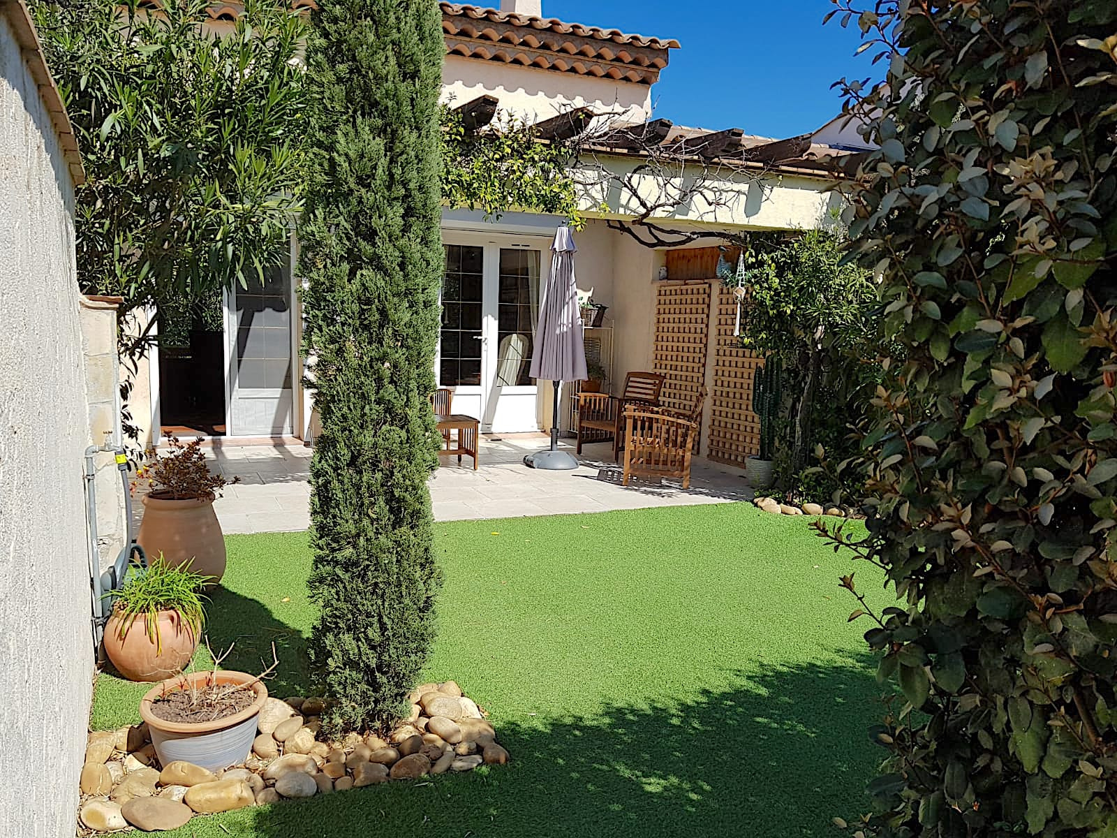Vous pourrez y découvrir lors de votre visite un espace parking confortable avec possibilité d'y installer un abri voitures, un jardin intimiste, véritable invitation à la flânerie ou ce mêle soleil et ombre, selon vos envies ( espace détente piscine, jardin SUD, terrasse couverte, terrasse pergola, salon d'hiver, Jardin NORD).