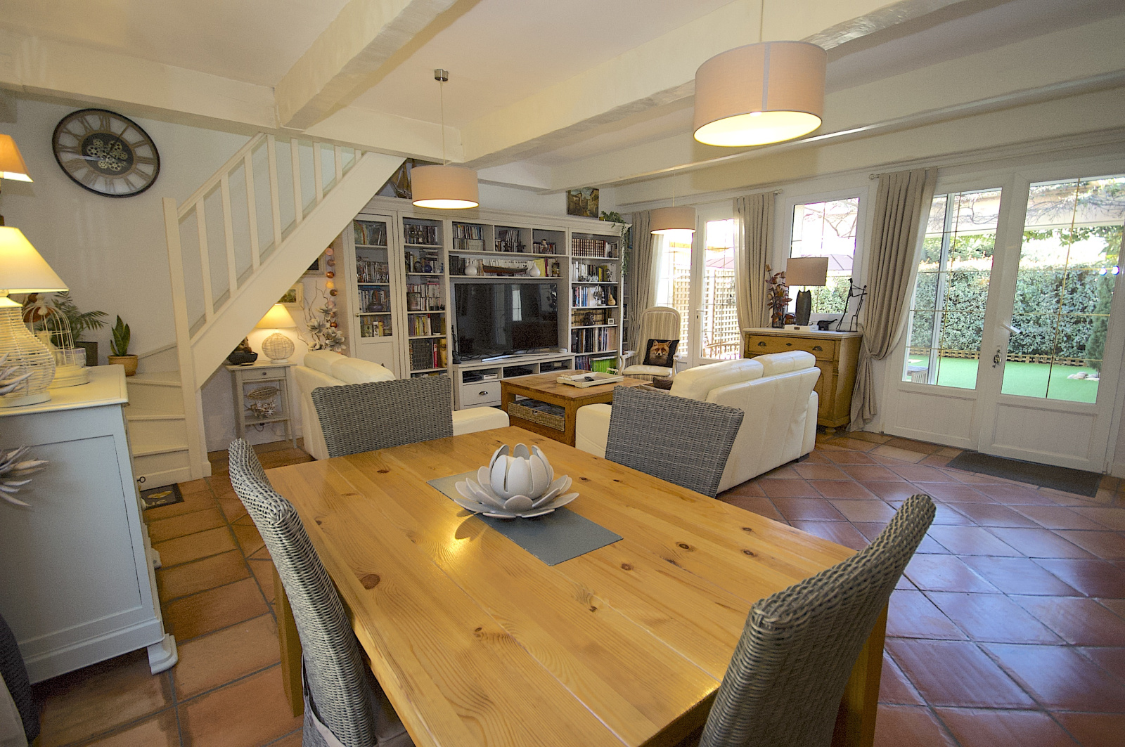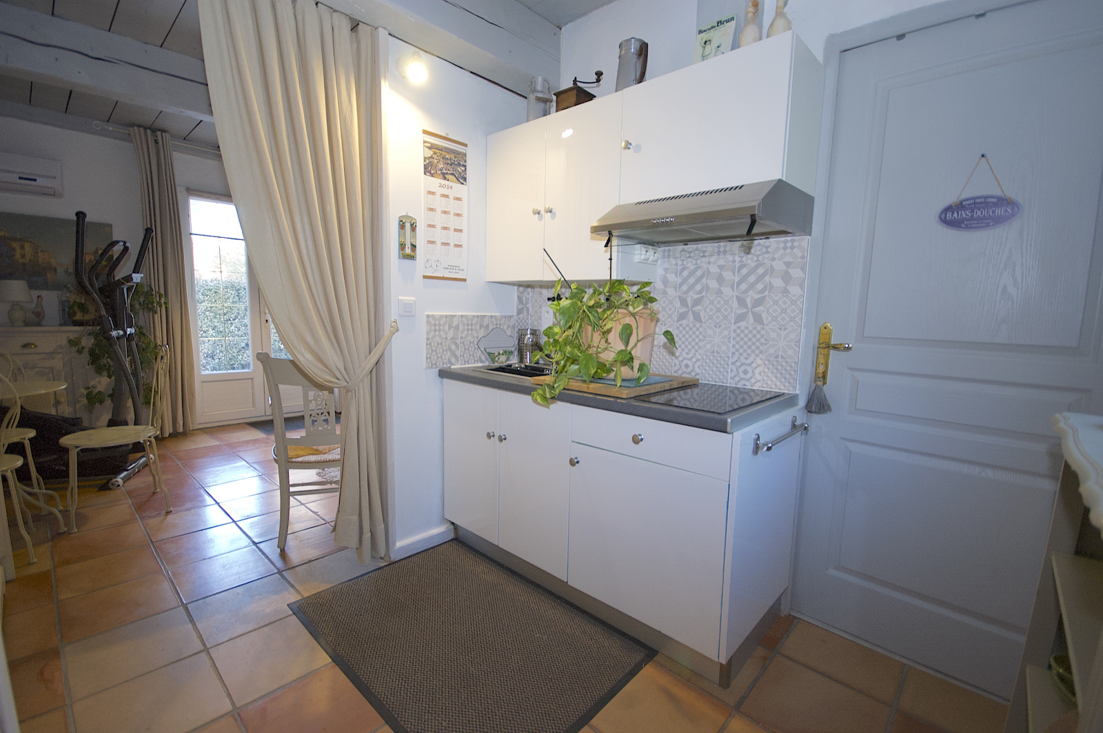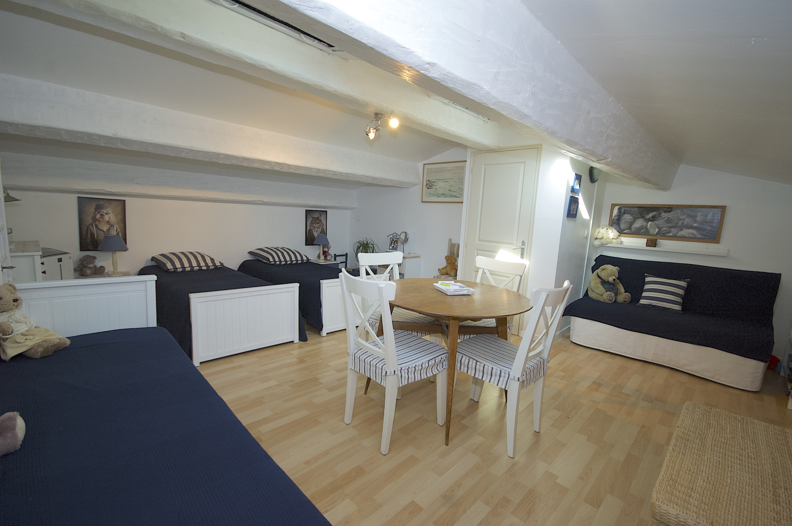 Par suite, un studio individuel composé d'une pièce à vivre (chambre n°4), coin kitchenette, salle de douche et wc, terrasse au SUD de 30m2 environ pourra faire le bonheur de votre famille et vos amis (possibilité d'aménagement des combles pour créer un chambre supplémentaire).