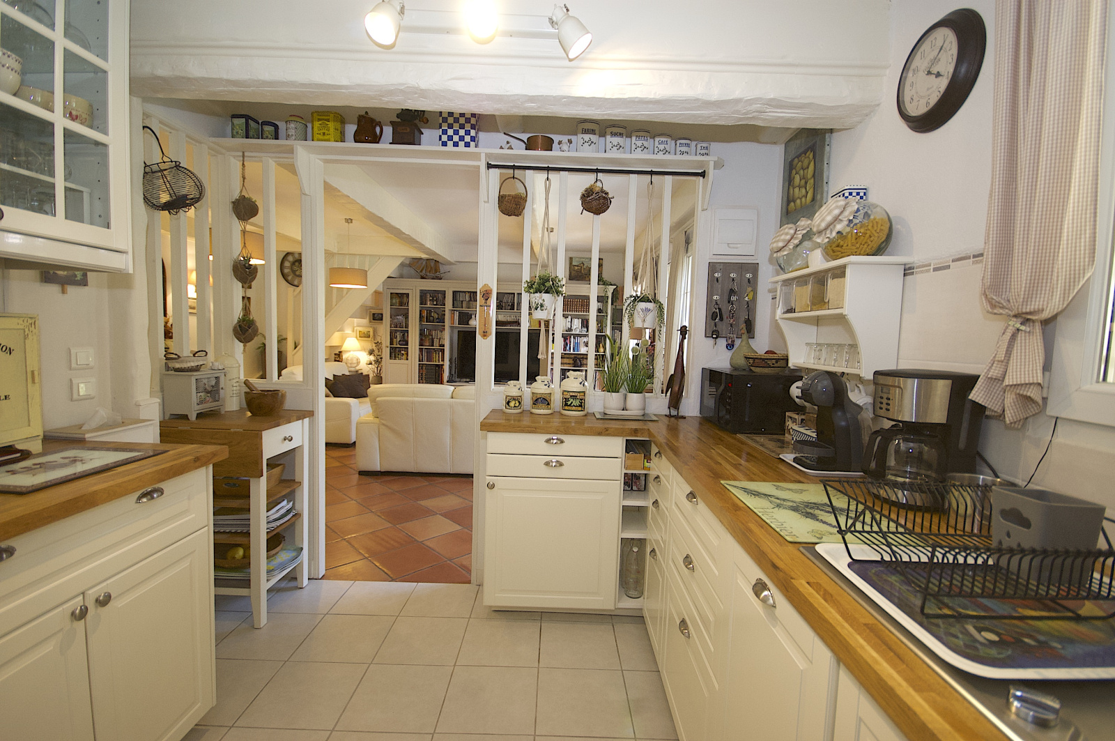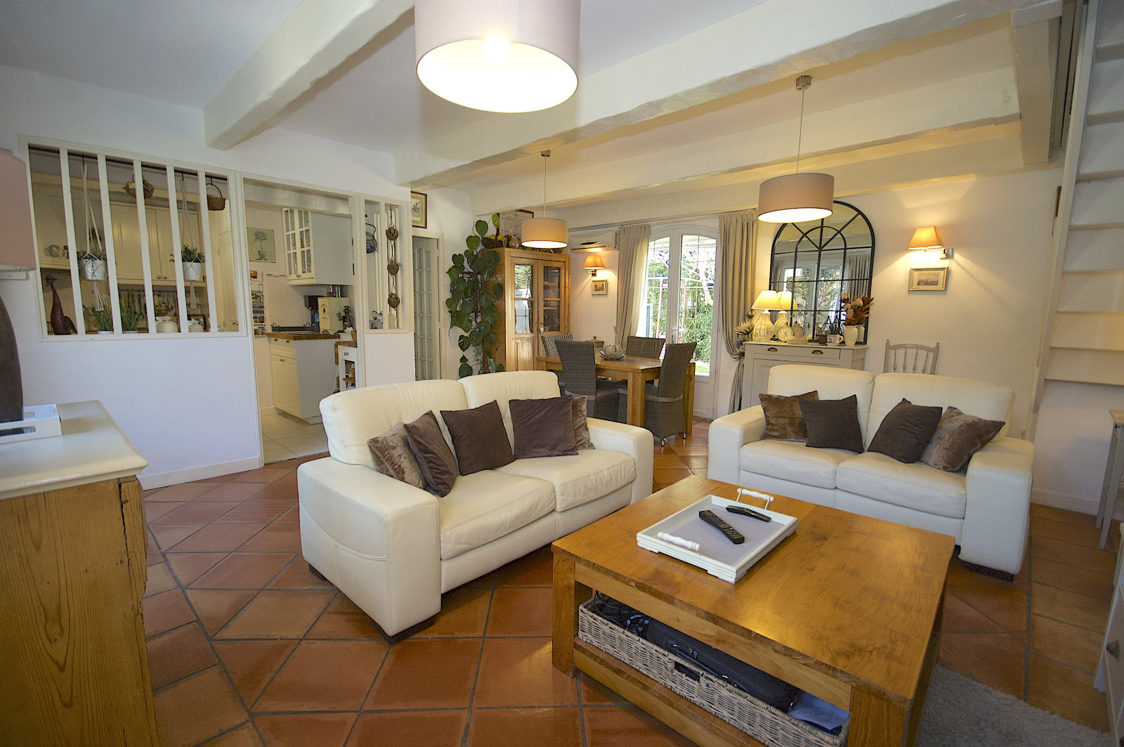 Les espaces de vie à l'intérieur se composes de la manière suivante pour la maison principale : entrée, salle de séjour-salle à manger traversante, grande cuisine à l'américaine équipée, salle de bains, wc individuel, chambre Maître n°1 de plain pied avec dressing. À l'étage : chambre n°2, grenier (possibilité chambre supplémentaire et salle de douche), chambre n°3.