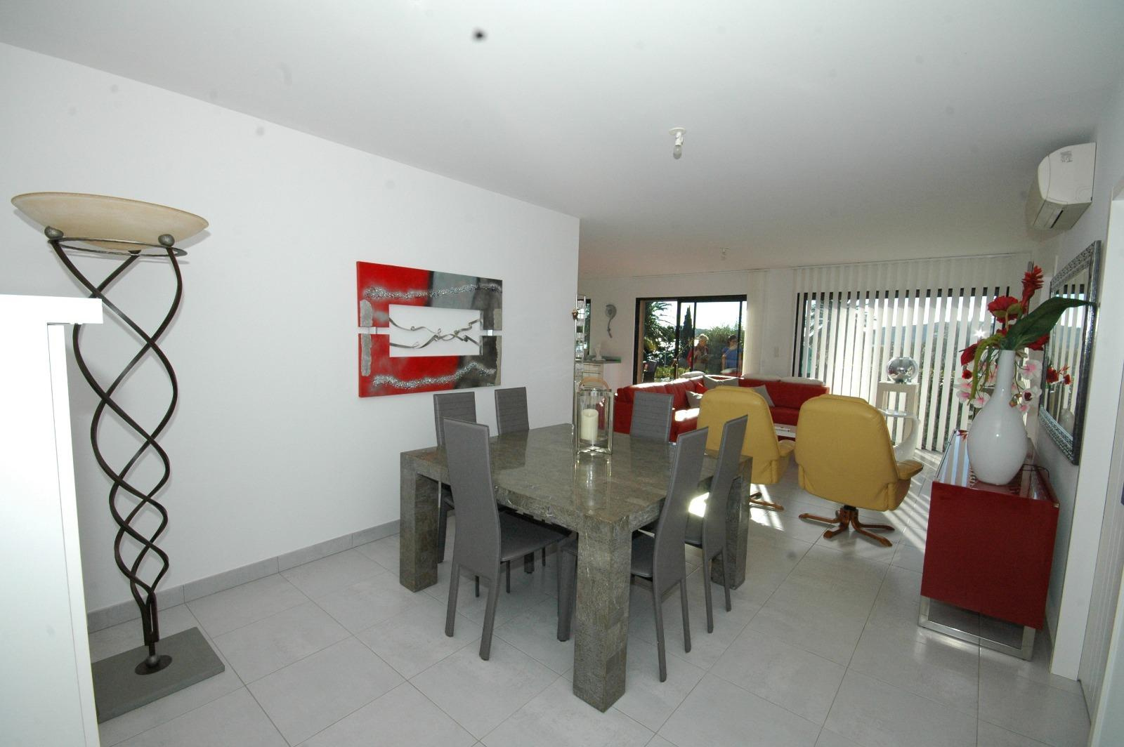 il bénéficie égalment d'une grande loggia en partie EST, d'une terrasse en partie sud et d'un jardin paysagé en partie OUEST. le tout avec vue mer, garage.