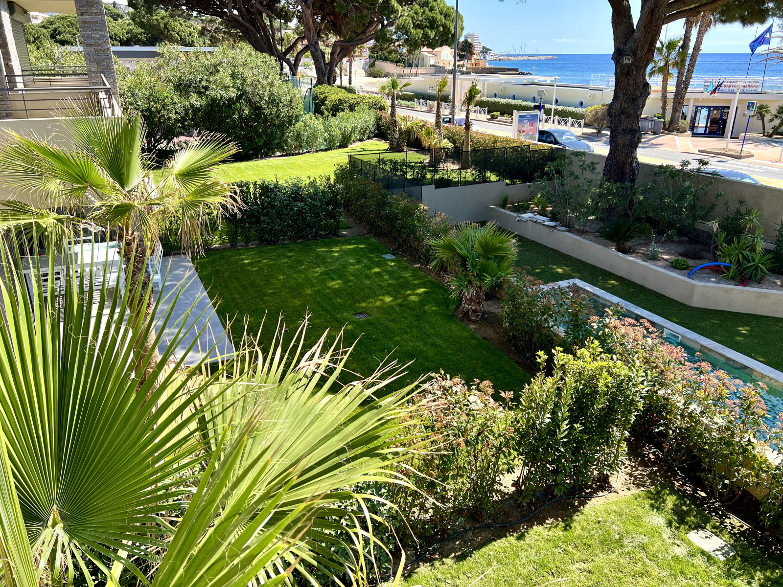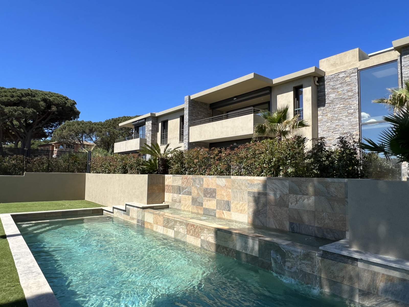 Aux portes de la ville en front de mer, dans un quartier résidentiel face à une plage de sable fin à Sainte-Maxime.