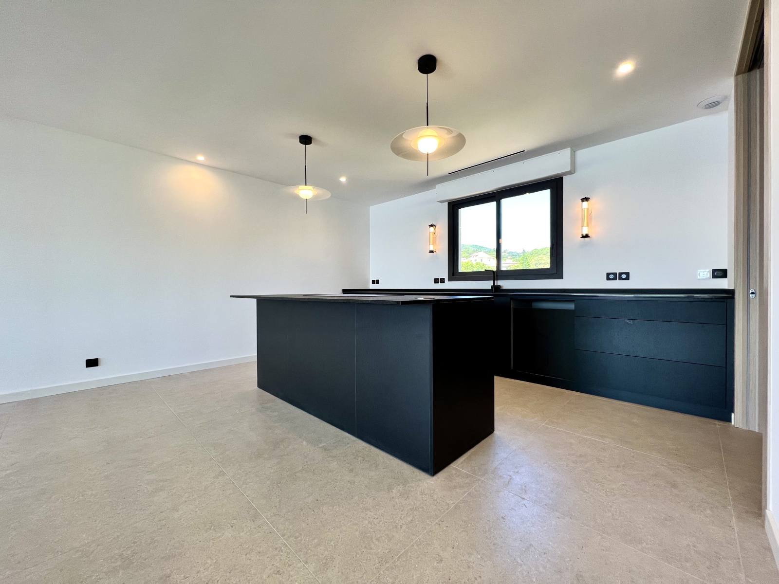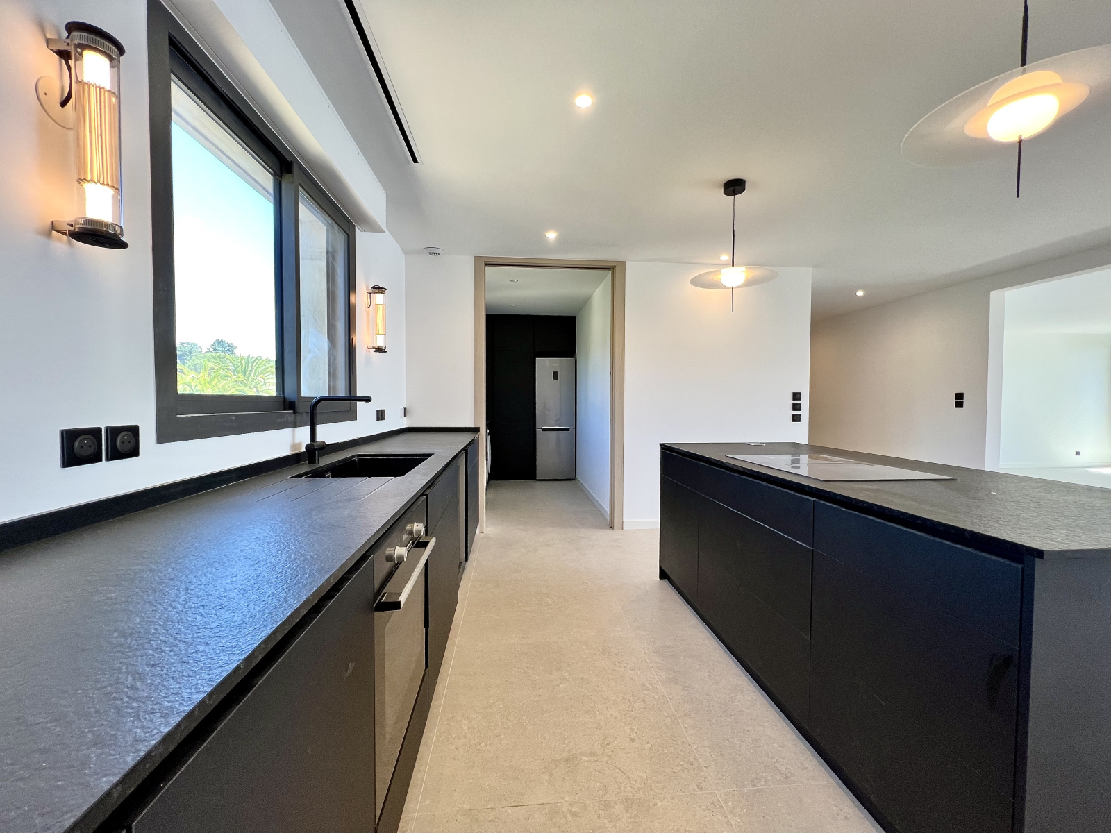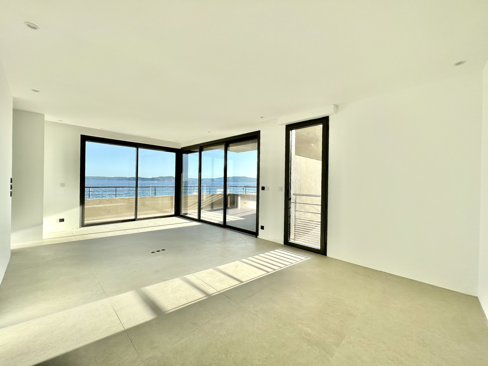 Un appartement comprenant un hall d’entrée avec vestiaire et cabinet de toilette invité, une cuisine ouverte avec office cuisine, une salle de séjour ouvrant sur terrasse au SUD et vue mer panoramique, une aile nuit composée de : couloir de dégagement, chambre n°1 de Maître avec dressing, salle de douche et wc, terrasse privative et vue mer panoramique, chambre n°2 avec salle de douche et wc. Pour une superficie habitable sur plain d’environ 154,85m2.
